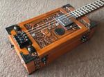 The tone? Woody, or course, but also deep and bright yet compressed all at once with an acoustically mid-scooped profile. It wasn't what I expected, to be honest, but it works surprisingly well with heavy strings, so I chose an meaty set of strings for this one. This has 62/48/36/26 gauge strings tuned to Low Taro (CFCF) which oddly balances out the warm, vintage response that humbucker provides. The overall effect is that this guitar puts out a very wide range and that tone control is going to be a big player.